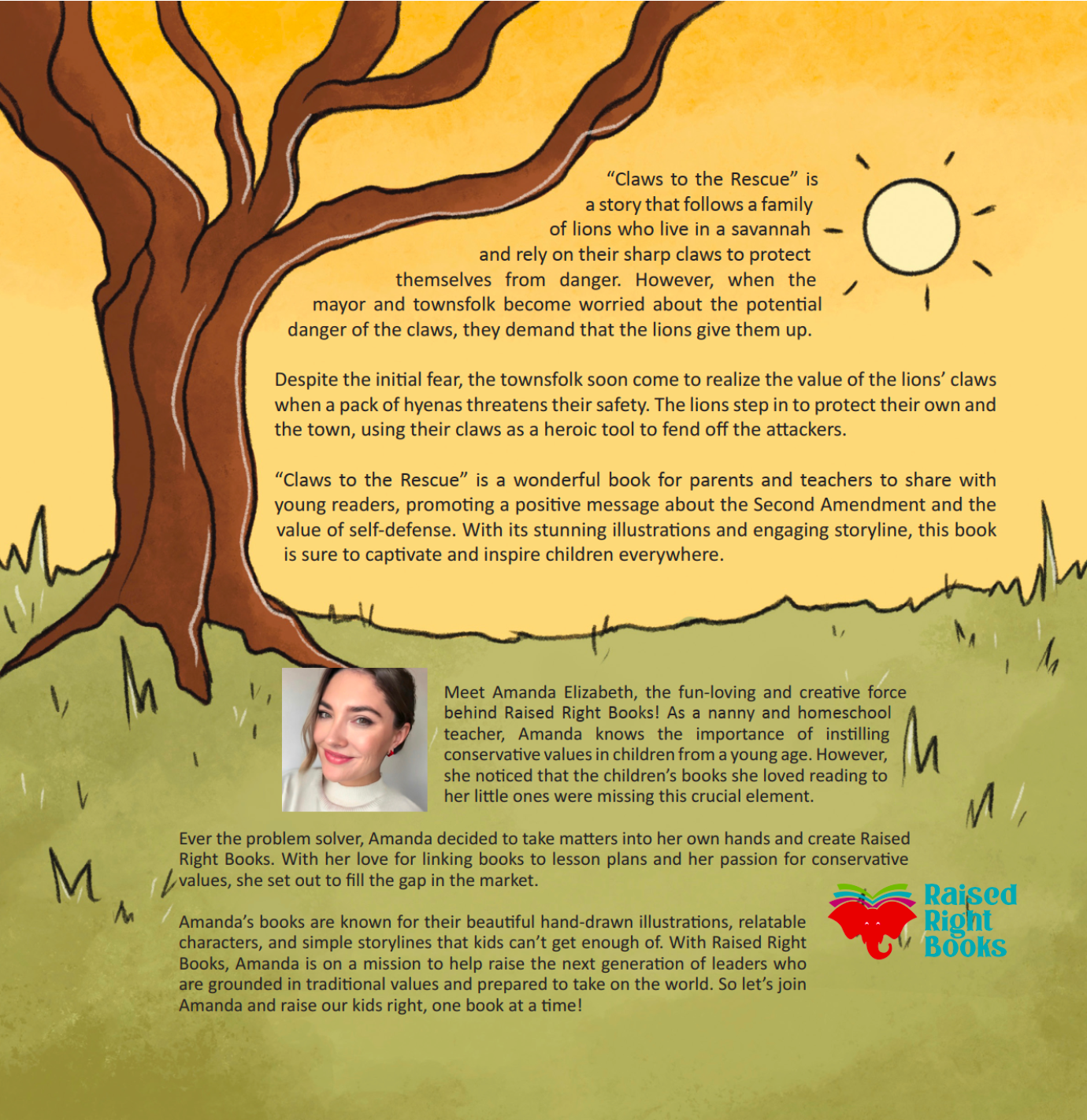 "Claws to the Rescue" is a wonderful book for parents and teachers to share with young readers, promoting a positive message about the Second Amendment and the value of self-defense. With its stunning illustrations and engaging storyline, this book is sure to captivate and inspire children everywhere.
